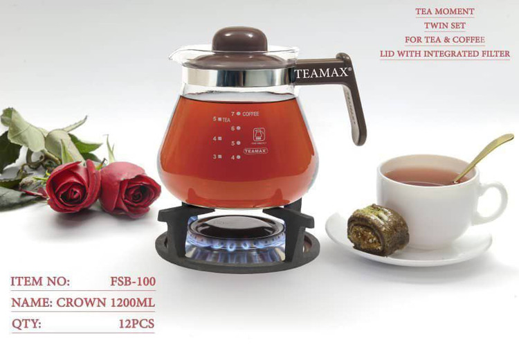 قوری پیرکس فلتردار متوسط شعله مستقیم کروان _ (حجم 1200ml)